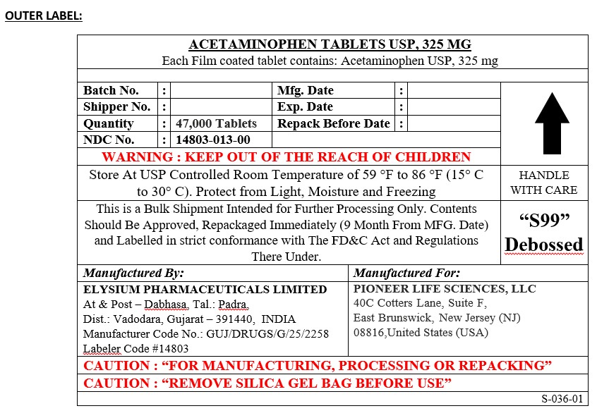 | Elysium Pharmaceuticals Limited | 863182240 | pack(14803-013) , manufacture(14803-013) | |