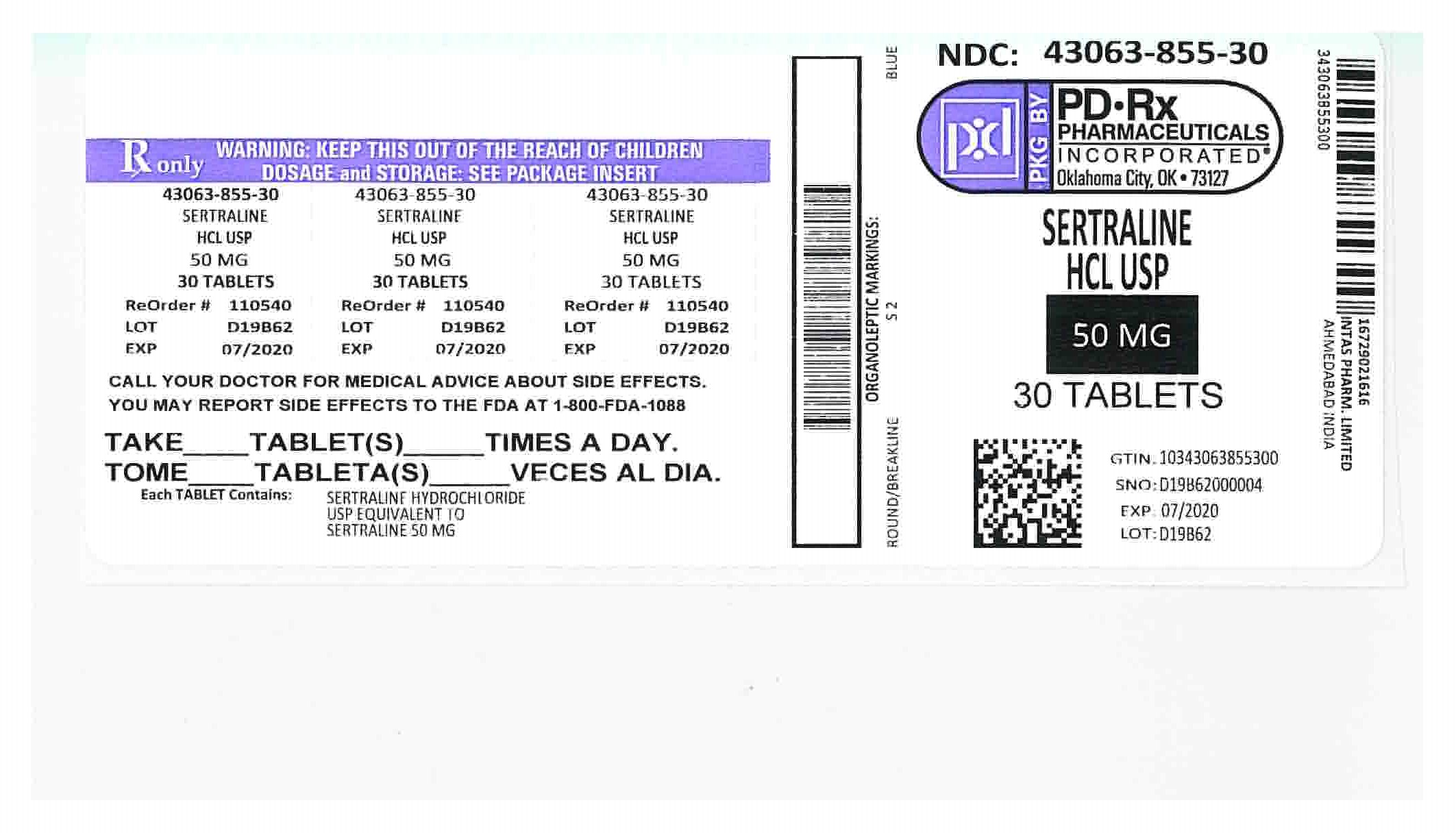 | PD-Rx Pharmaceuticals, Inc. | 156893695 | repack(43063-855) | |