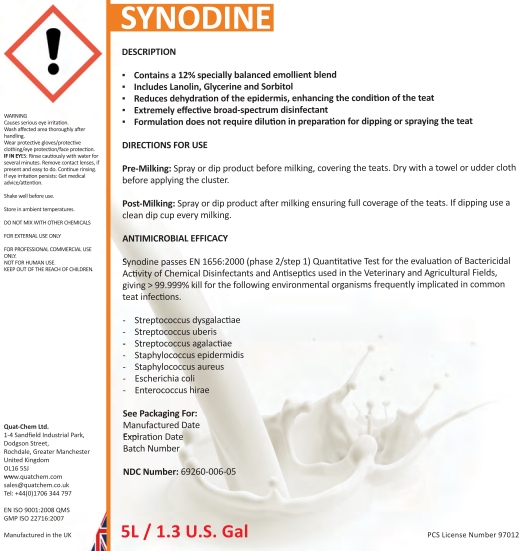 Synodine by is a Animal medication manufactured, distributed, or labeled by Quat-Chem Ltd.. Drug facts, warnings, and ingredients follow.