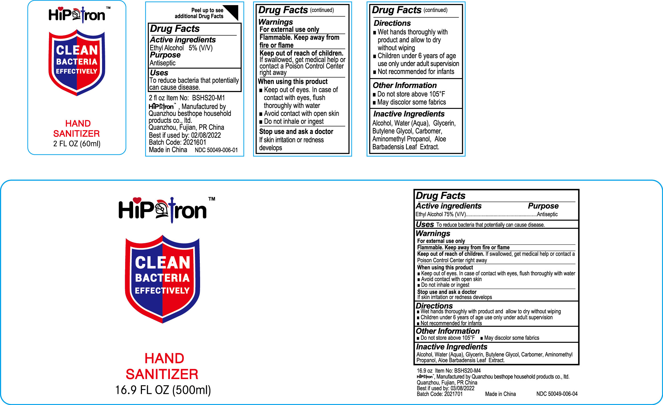 hand sanitizer by is a Otc medication manufactured, distributed, or labeled by QUANZHOU BESTHOPE HOUSEHOLD PRODUCTS CO.,LTD.. Drug facts, warnings, and ingredients follow.
