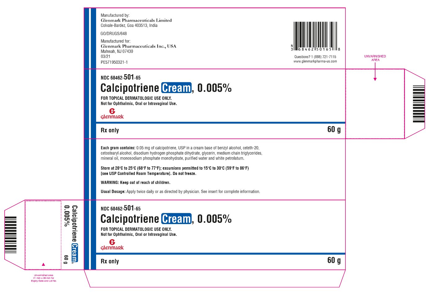 -1 TUBE OF CALCIPOTRIENE CREAM 0.005%, 60g (NDC: 68462-501-65)