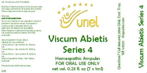 Viscum Abietis Series 4 7ml by is a Homeopathic medication manufactured, distributed, or labeled by Uriel Pharmacy Inc.. Drug facts, warnings, and ingredients follow.