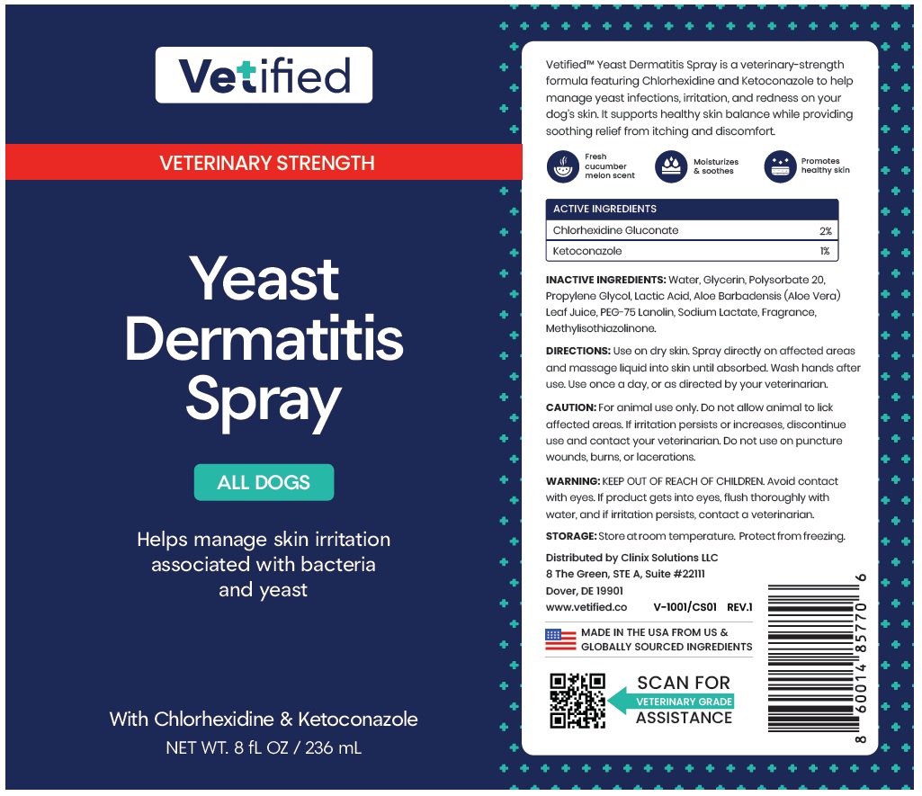 Vetified VETERINARY STRENGTH Yeast Dermatitis ALL DOGS by is a Animal medication manufactured, distributed, or labeled by Clinix Solutions LLC. Drug facts, warnings, and ingredients follow.