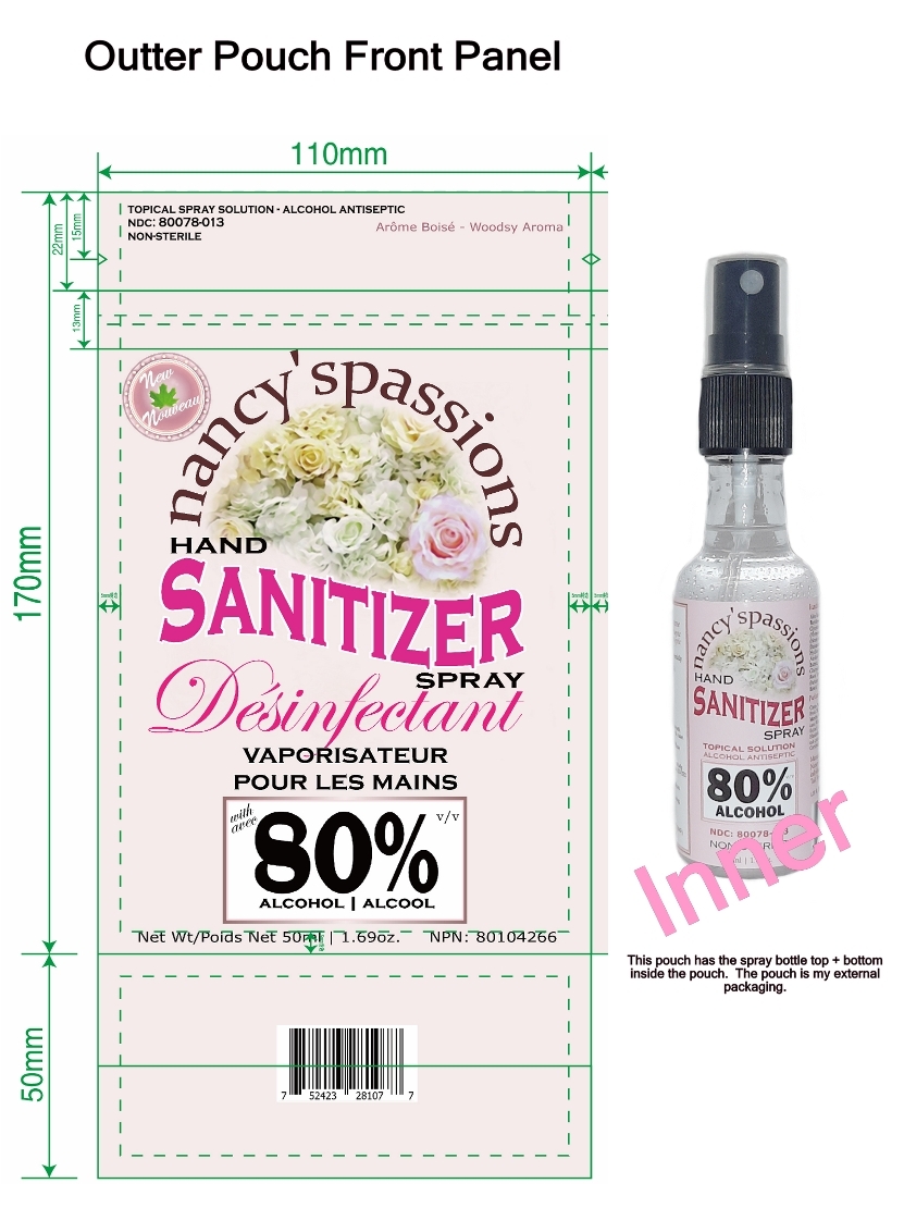 Hand Sanitizer by is a Otc medication manufactured, distributed, or labeled by Nancy's Passions LLC. Drug facts, warnings, and ingredients follow.