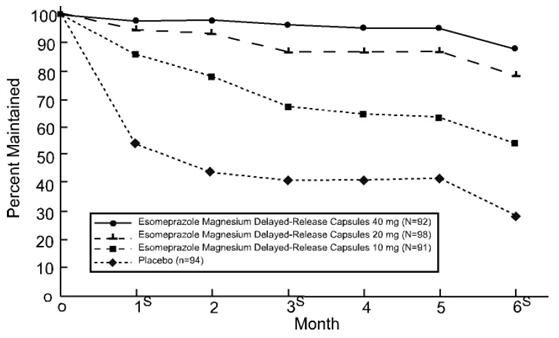 Esomeprazole Magnesium Delayed-Release Capsules are indicated for the maintenance of healing of EE in adults. Controlled studies do not extend beyond 6 months.