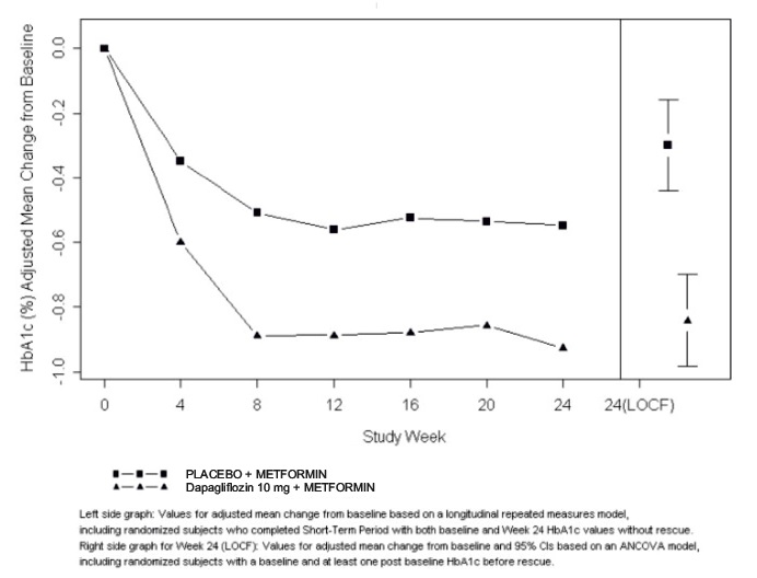 The data in Table 1 is derived from 12 glycemic control placebo-controlled trials in adult patients with type 2 diabetes mellitus ranging from 12 to 24 weeks. In 4 trials dapagliflozin was used as monotherapy, and in 8 trials dapagliflozin was used as add-on to background antidiabetic therapy or as combination therapy with metformin [see Clinical Studies (14.1)].