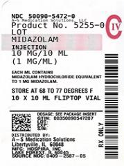 To initiate sedation, an intravenous loading dose of 0.05 to 0.2 mg/kg administered over at least 2 to 3 minutes can be used to establish the desired clinical effect IN PATIENTS WHOSE TRACHEA IS INTUBATED. (Midazolam should not be administered as a rapid intravenous dose.) This loading dose may be followed by a continuous intravenous infusion to maintain the effect. An infusion of midazolam injection has been used in patients whose trachea was intubated but who were allowed to breathe spontaneously. Assisted ventilation is recommended for pediatric patients who are receiving other central nervous system depressant medications such as opioids. Based on pharmacokinetic parameters and reported clinical experience, continuous intravenous infusions of midazolam should be initiated at a rate of 0.06 to 0.12 mg/kg/hr (1 to 2 mcg/kg/min). The rate of infusion can be increased or decreased (generally by 25% of the initial or subsequent infusion rate) as required, or supplemental intravenous doses of midazolam can be administered to increase or maintain the desired effect. Frequent assessment at regular intervals using standard pain/sedation scales is recommended. Drug elimination may be delayed in patients receiving erythromycin and/or other P450-3A4 enzyme inhibitors (see PRECAUTIONS, Drug Interactions) and in patients with liver dysfunction, low cardiac output (especially those requiring inotropic support), and in neonates. Hypotension may be observed in patients who are critically ill, particularly those receiving opioids and/or when midazolam is rapidly administered. |