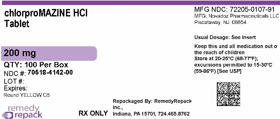 Chlorpromazine Hydrochloride Tablets, USP, 200 mg are available in