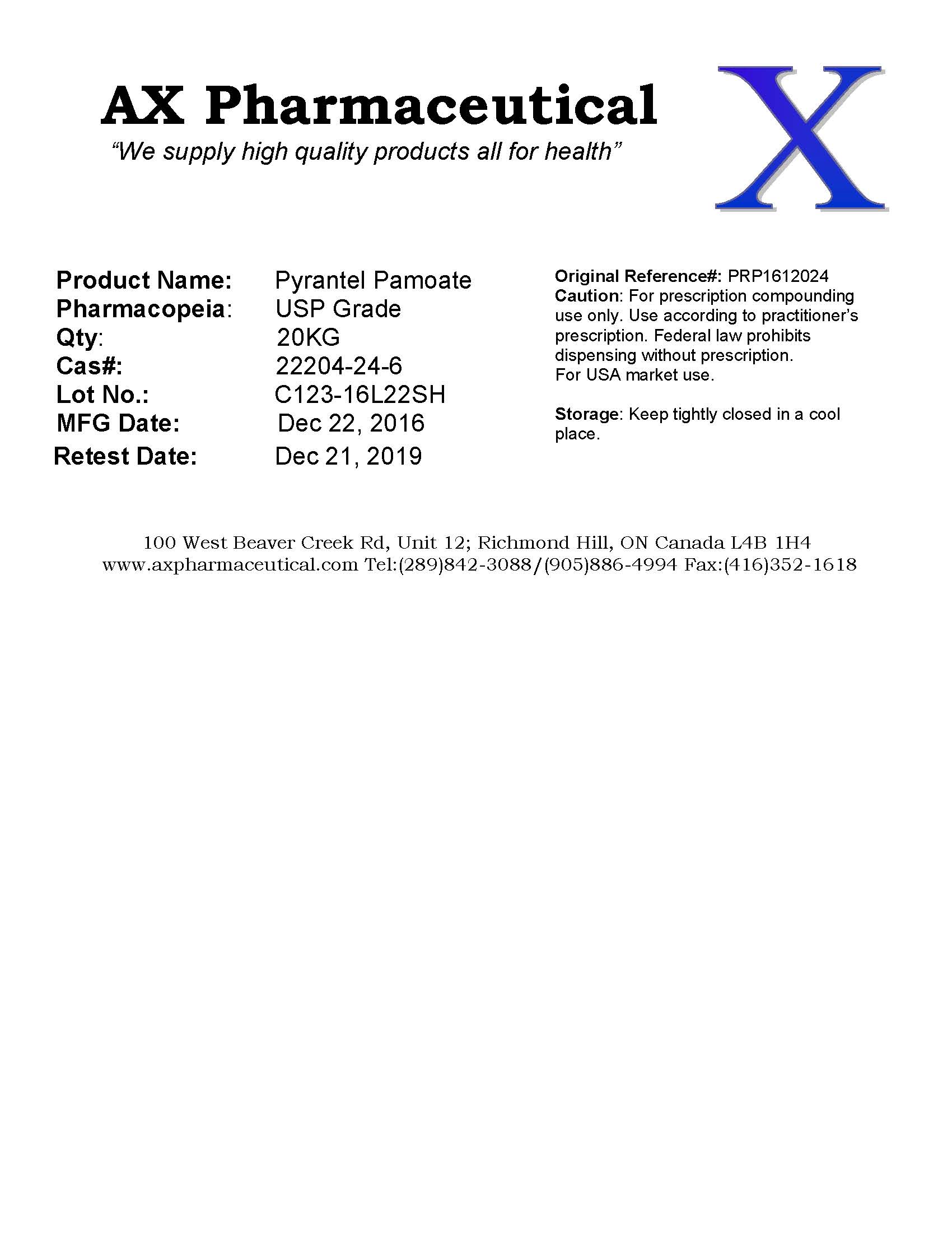 | Labeler - AX Pharmaceutical Corp (202924858) |