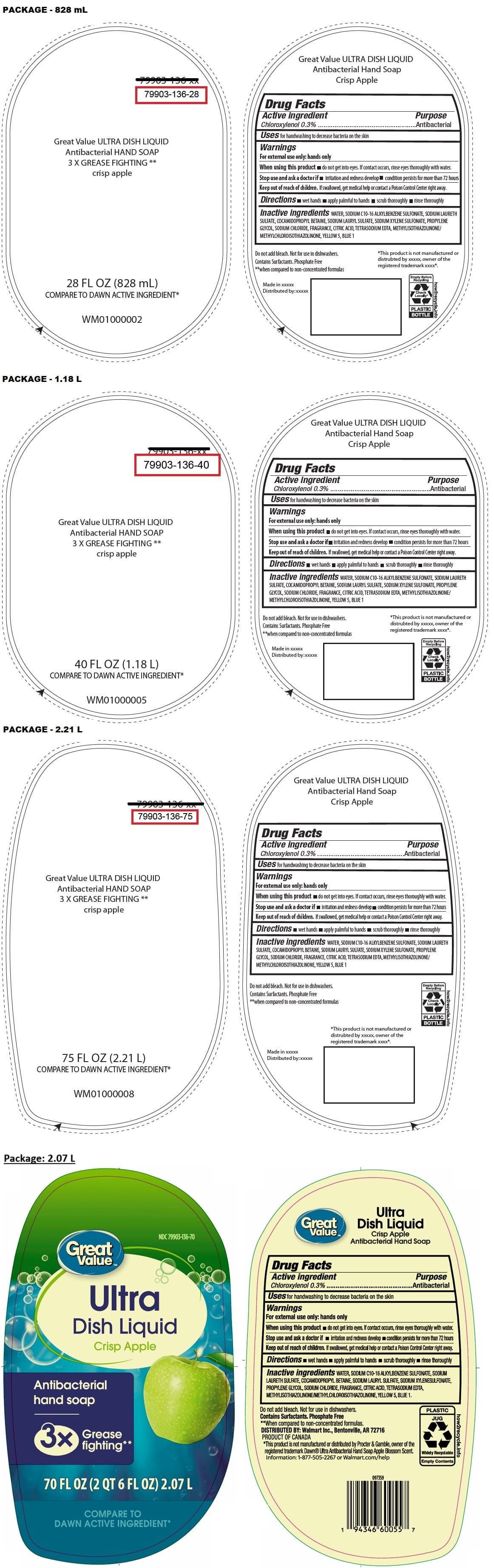Great Value ULTRA DISH Liquid Antibacterial HANDSOAP crisp apple by is a Otc medication manufactured, distributed, or labeled by WALMART INC.. Drug facts, warnings, and ingredients follow.