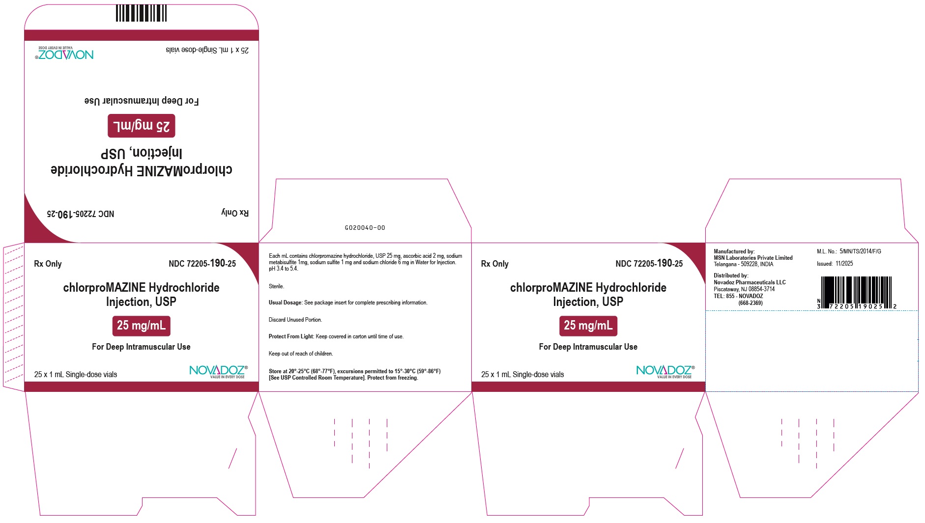 packaged in carton of 25 NDC: 72205-190-25