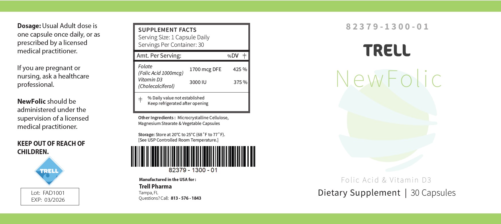 NewFolic by is a Other medication manufactured, distributed, or labeled by Trell Pharma. Drug facts, warnings, and ingredients follow.