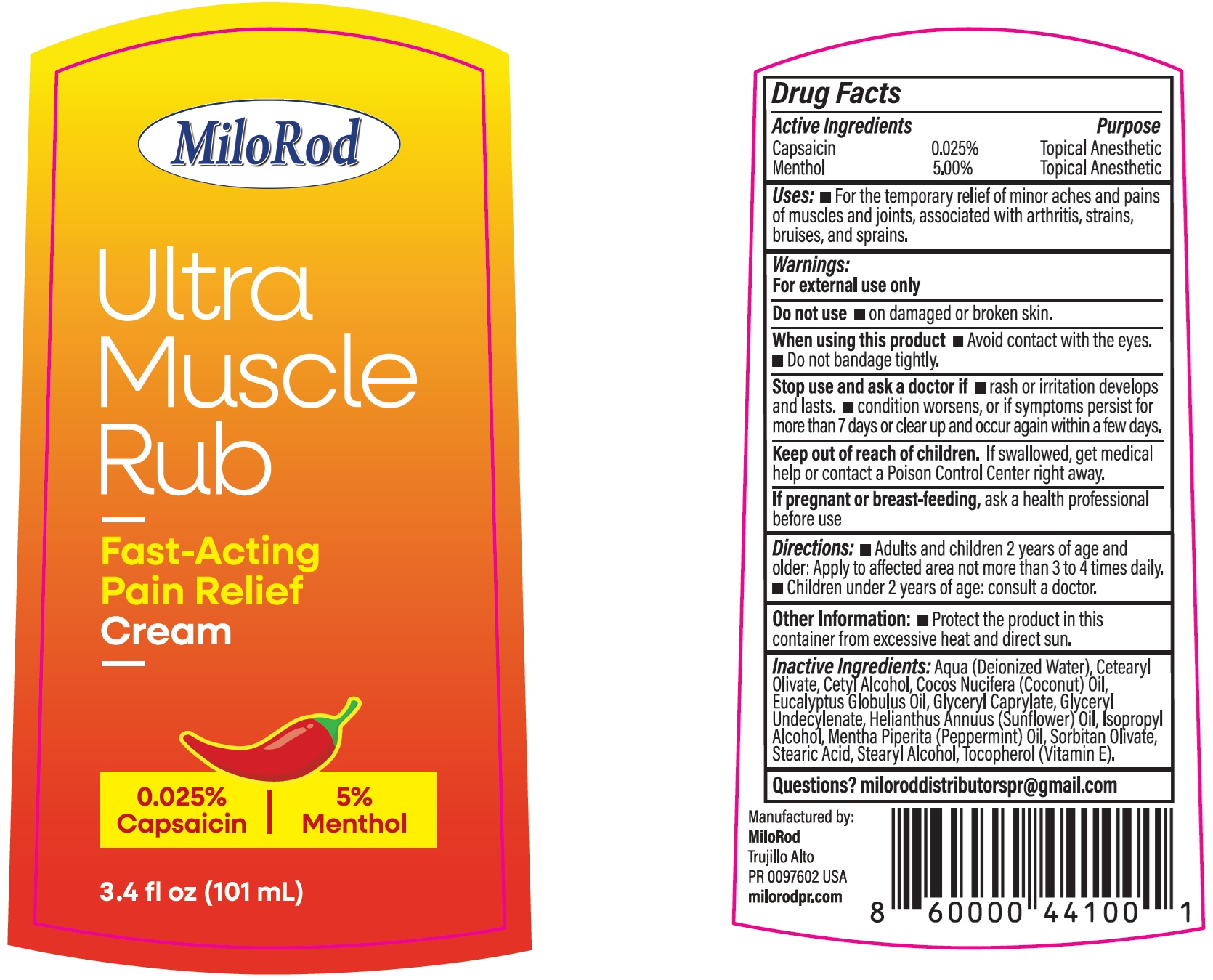 MiloRod Ultra Muscle Rub Fast-Acting Pain Relief by is a Otc medication manufactured, distributed, or labeled by Milo Rod Import & Export, Inc., Pure Source, LLC. Drug facts, warnings, and ingredients follow.