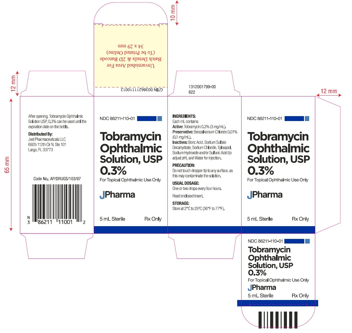 5 mL containing tobramycin 0.3% (3 mg/mL)……….. NDC: 86211-110-01