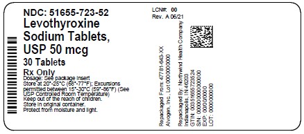 | 50 mcg | White | "T|4" and "50" | 51655-723-52 |