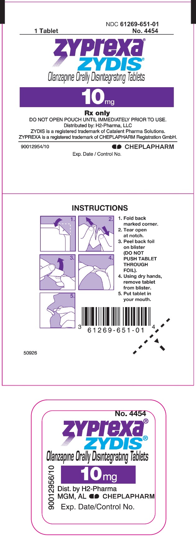 After opening sachet, peel back foil on blister. Do not push tablet through foil. Immediately upon opening the blister, using dry hands, remove tablet and place entire ZYPREXA ZYDIS in the mouth. Tablet disintegration occurs rapidly in saliva so it can be easily swallowed with or without liquid.
