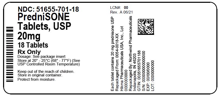 NDC: 51655-701-18: Bottle of 18 Tablets