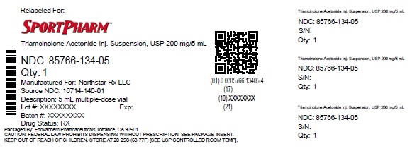 5 mL multiple-dose vial (200 mg per 5 mL) in 1 carton: NDC 85766-134-05 (relabeled from NDC: 16714-140-01)