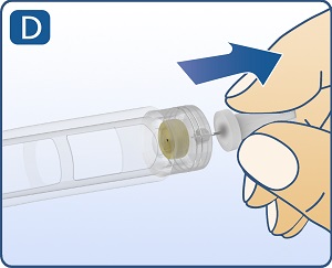 Pull off inner needle cap and throw away. (See Figure D). A small drop of liquid may appear. This is normal.