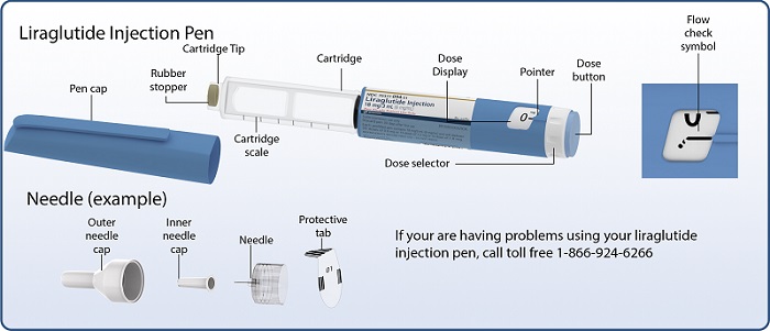 Check liraglutide injection in the cartridge. The liquid should be clear, colorless and free of particles. If not, do not use.