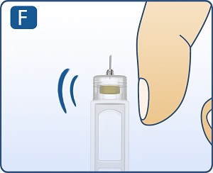 Tap cartridge gently with your finger a few times to bring any air bubbles to the top of the cartridge (See Figure F).