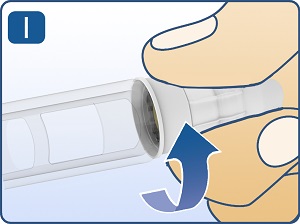 Push outer needle cap containing the needle straight onto the pen, then screw needle on until secure (See Figure I).