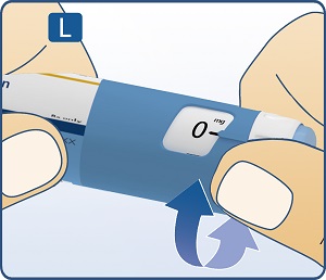 Turn the dose selector until the black line of your needed dose lines up with the pointer (0.6 mg, 1.2 mg or 1.8 mg) (See Figure L).