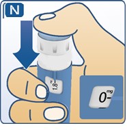 Press down on the center of the dose button to inject until the black line of 0 mg lines up with the pointer (See Figure N).
