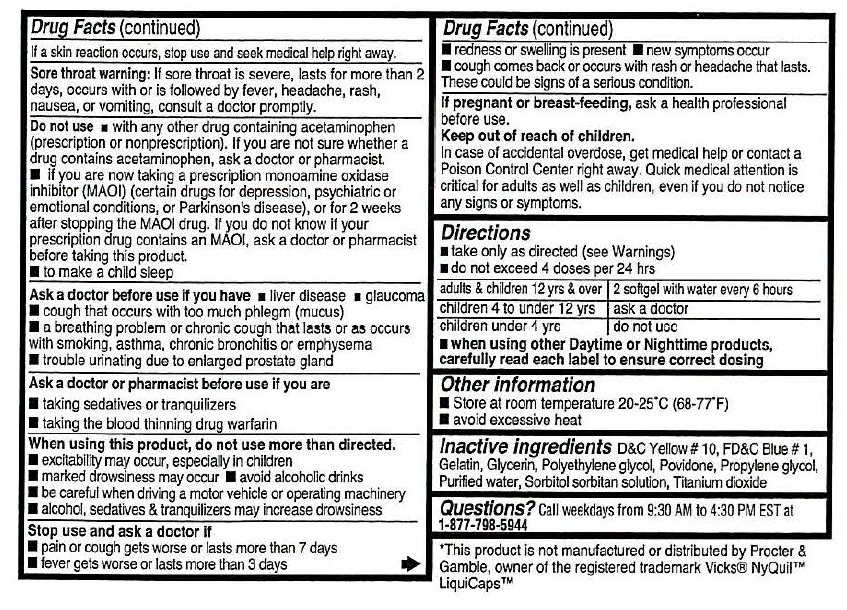 acetaminophen, dextromethorphan hbr and doxylamine succinate capsule, liquid filled |