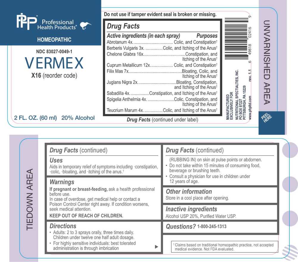 Vermex by is a Homeopathic medication manufactured, distributed, or labeled by Nutritional Specialties, Inc.. Drug facts, warnings, and ingredients follow.