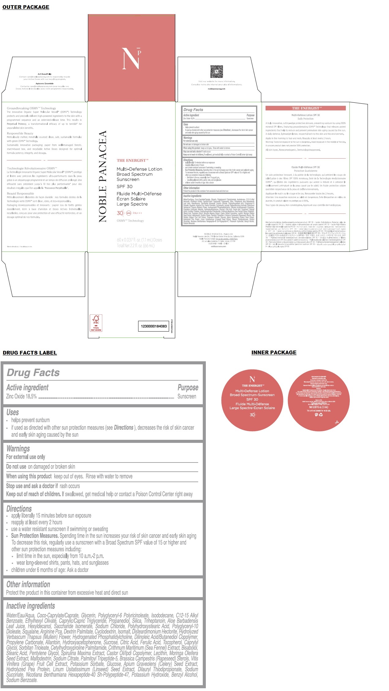 THE ENERGIST Multi-Defense Broad Spectrum Sunscreen SPF 30 by is a Otc medication manufactured, distributed, or labeled by Noble Panacea Labs, Inc.. Drug facts, warnings, and ingredients follow.