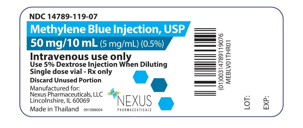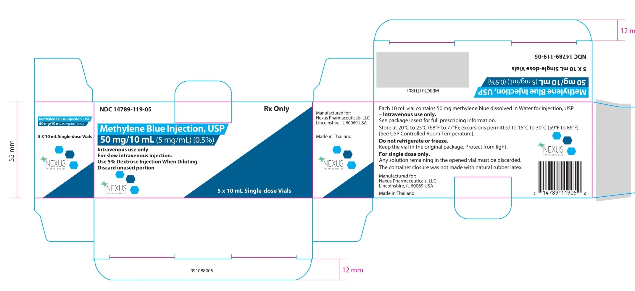 Methylene Blue Injection, USP:is supplied in 10 mL single-dose vials. Each 10 mL vial contains 50 mg of methylene blue as a clear dark blue solution. A box contains five vials.