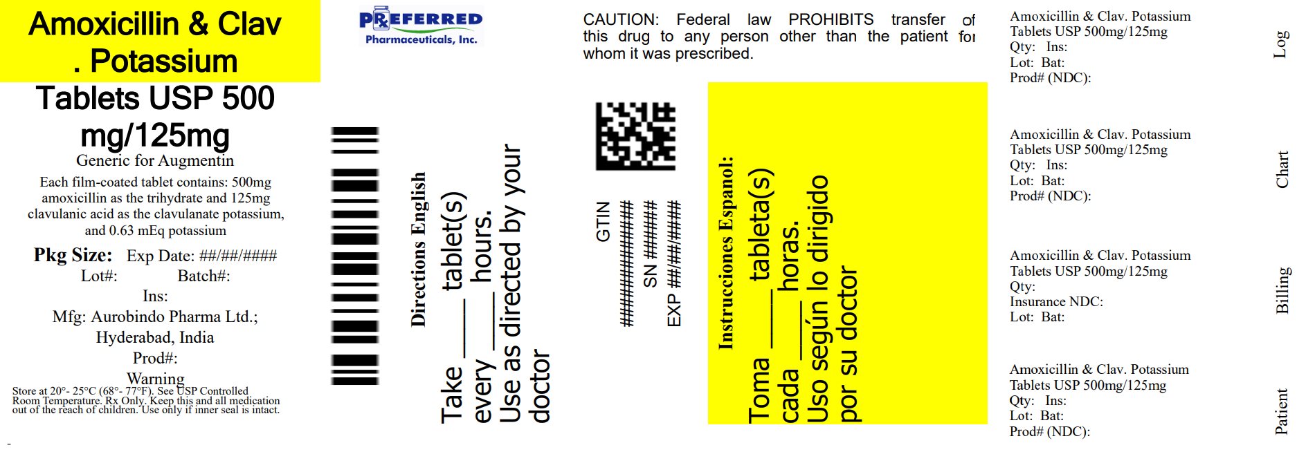 Amoxicillin and Clavulanate Potassium by is a Prescription medication manufactured, distributed, or labeled by Preferred Pharmaceuticals Inc.. Drug facts, warnings, and ingredients follow.