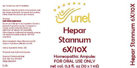 Hepar Stannum 6/10 by is a Homeopathic medication manufactured, distributed, or labeled by Uriel Pharmacy Inc.. Drug facts, warnings, and ingredients follow.