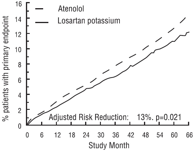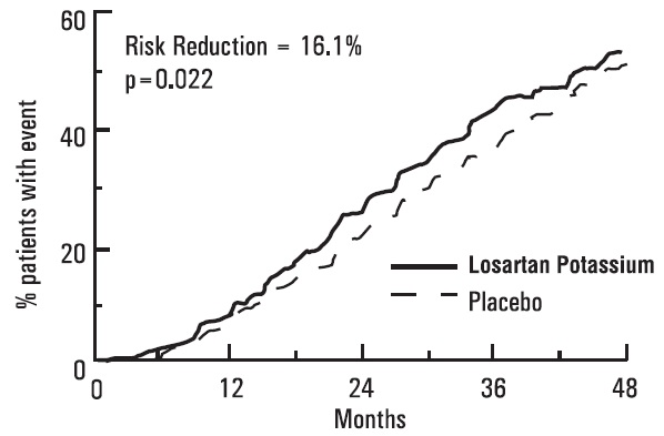 to lower the chance of stroke in patients with high blood pressure and a heart problem called left ventricular hypertrophy. Losartan potassium tablets may not help Black patients with this problem.