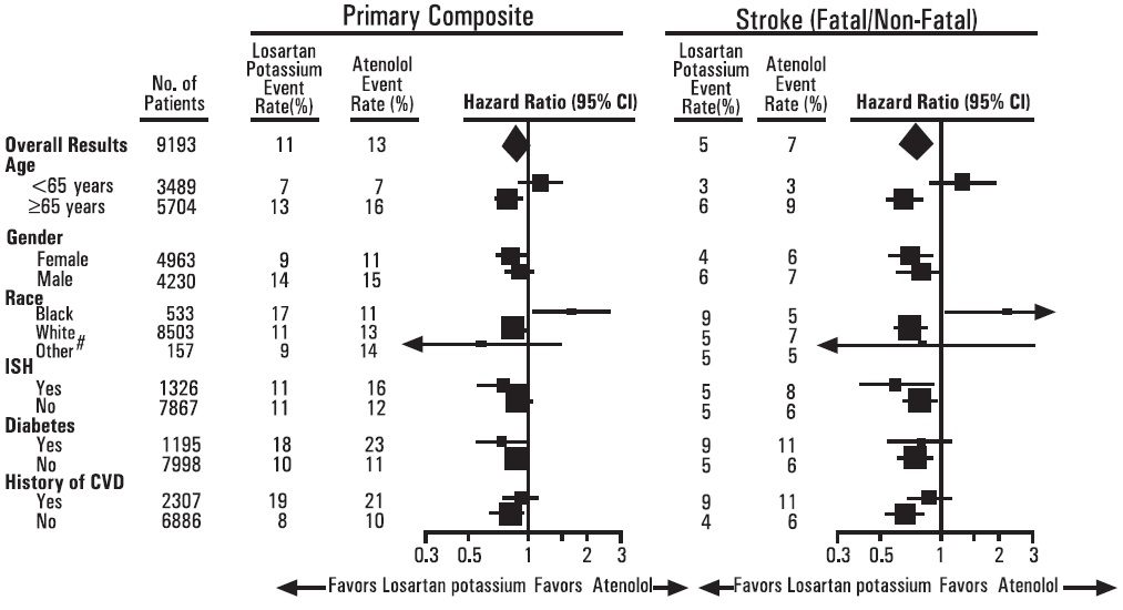 Losartan Potassium tablets are indicated to reduce the risk of stroke in patients with hypertension and left ventricular hypertrophy, but there is evidence that this benefit does not apply to Black patients [see Use in Specific Populations ( 8.6) and Clinical Pharmacology ( 12.3)].