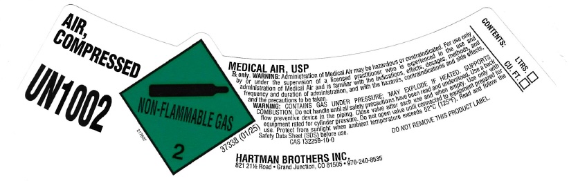 WARNING: For breathing support when used by properly trained personnel. For medical applications, Rx only. Administration of Medical Air may be hazardous or contraindicated. For use only by or under the supervision of licensed practitioner who is experienced in the use and administration of Medical Air and is familiar with the indications, effects, dosages, methods, and frequency and duration of administration, and with the hazards, contraindications and side effects, and the precautions to be taken.