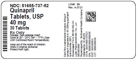 Following oral administration, peak plasma quinapril concentrations are observed within one hour. Based on recovery of quinapril and its metabolites in urine, the extent of absorption is at least 60%. The rate and extent of quinapril absorption are diminished moderately (approximately 25 to 30%) when quinapril tablets are administered during a high-fat meal. Following absorption, quinapril is deesterified to its major active metabolite, quinaprilat (about 38% of oral dose), and to other minor inactive metabolites. Following multiple oral dosing of quinapril, there is an effective accumulation half-life of quinaprilat of approximately 3 hours, and peak plasma quinaprilat concentrations are observed approximately 2 hours post-dose. Quinaprilat is eliminated primarily by renal excretion, up to 96% of an IV dose, and has an elimination half-life in plasma of approximately 2 hours and a prolonged terminal phase with a half-life of 25 hours. The pharmacokinetics of quinapril and quinaprilat are linear over a single-dose range of 5 to 80 mg doses and 40 to 160 mg in multiple daily doses. Approximately 97% of either quinapril or quinaprilat circulating in plasma is bound to proteins.