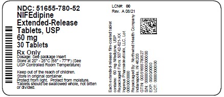 Nifedipine extended-release tablets, USP are supplied as 60 mg round film coated tablets. The different strengths can be identified as follows: