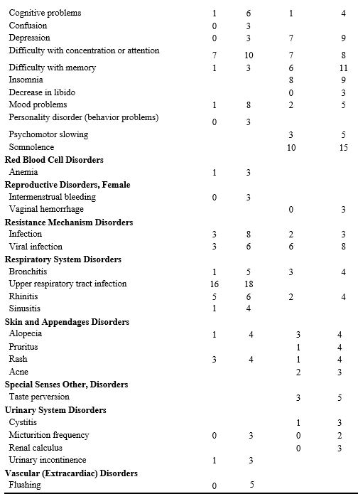 Immediate-release topiramate can cause, and therefore expected to be caused by topiramate extended-release capsules, cognitive/neuropsychiatric adverse reactions. The most frequent of these can be classified into three general categories: 1) Cognitive-related dysfunction (e.g., confusion, psychomotor slowing, difficulty with concentration/attention, difficulty with memory, speech or language problems, particularly word-finding difficulties); 2) Psychiatric/behavioral disturbances (e.g., depression or mood problems); and 3) Somnolence or fatigue.