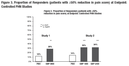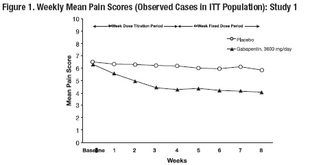 Gabapentin was evaluated for the management of postherpetic neuralgia (PHN) in two randomized, double-blind, placebo-controlled, multicenter studies. The intent-to-treat (ITT) population consisted of a total of 563 patients with pain for more than 3 months after healing of the herpes zoster skin rash (Table 6).
