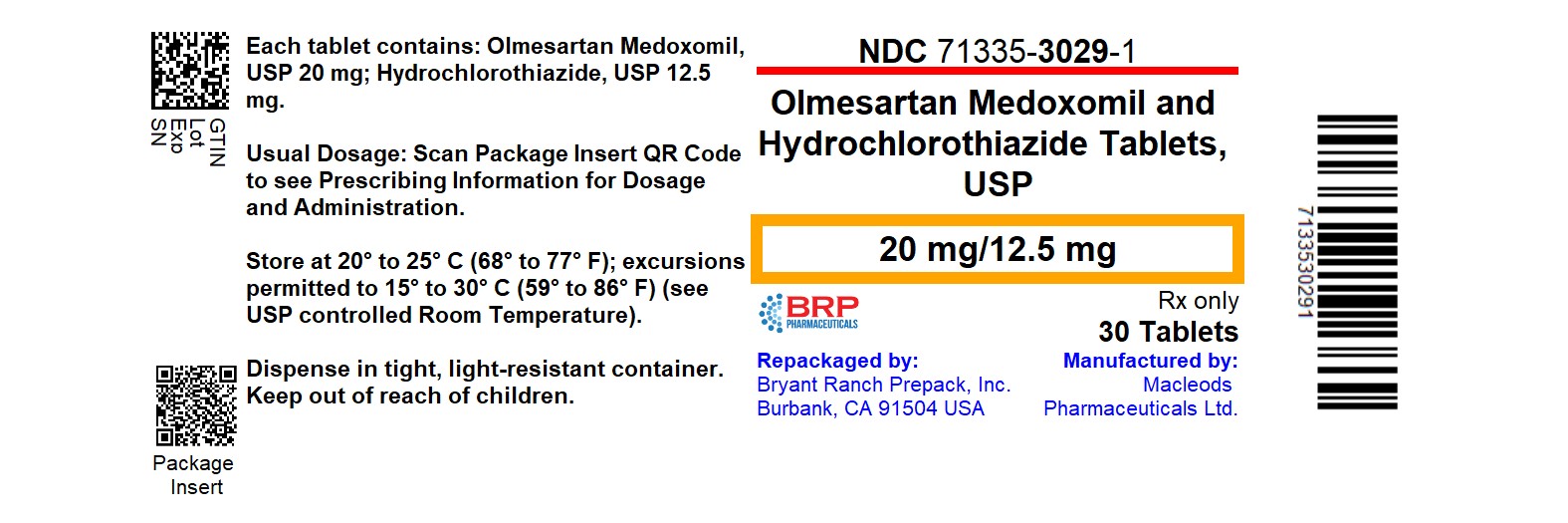 OLMESARTAN MEDOXOMIL and HYDROCHLOROTHIAZIDE by is a Prescription medication manufactured, distributed, or labeled by Bryant Ranch Prepack. Drug facts, warnings, and ingredients follow.