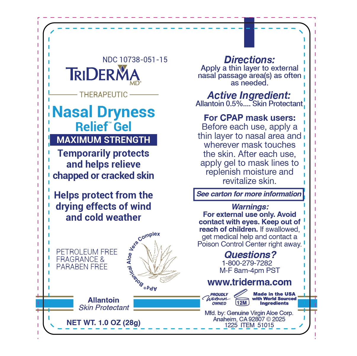 Nasal Dryness Relief Gel by is a Otc medication manufactured, distributed, or labeled by Genuine Virgin Aloe Corporation. Drug facts, warnings, and ingredients follow.
