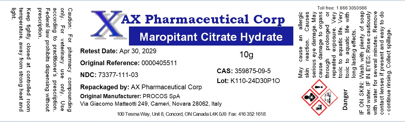 Maropitant Citrate Hydrate by is a Other medication manufactured, distributed, or labeled by AX Pharmaceutical Corp. Drug facts, warnings, and ingredients follow.