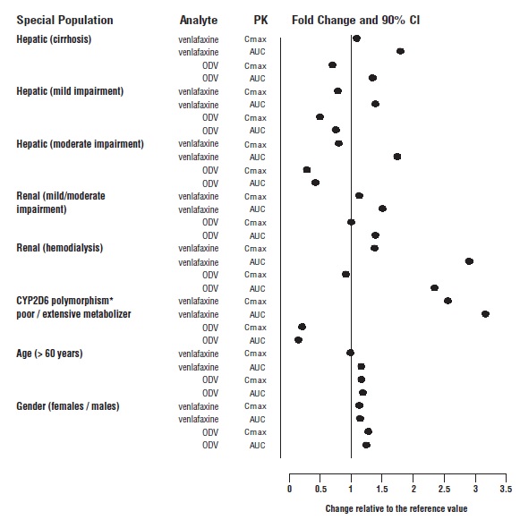 Reduce the venlafaxine hydrochloride extended-release capsules total daily dose by 50% in patients with mild (Child-Pugh Class A) to moderate (Child-Pugh Class B) hepatic impairment. Reduce the total daily dose by 50% or more in patients with severe hepatic impairment (Child-Pugh Class C) or hepatic cirrhosis [see ].