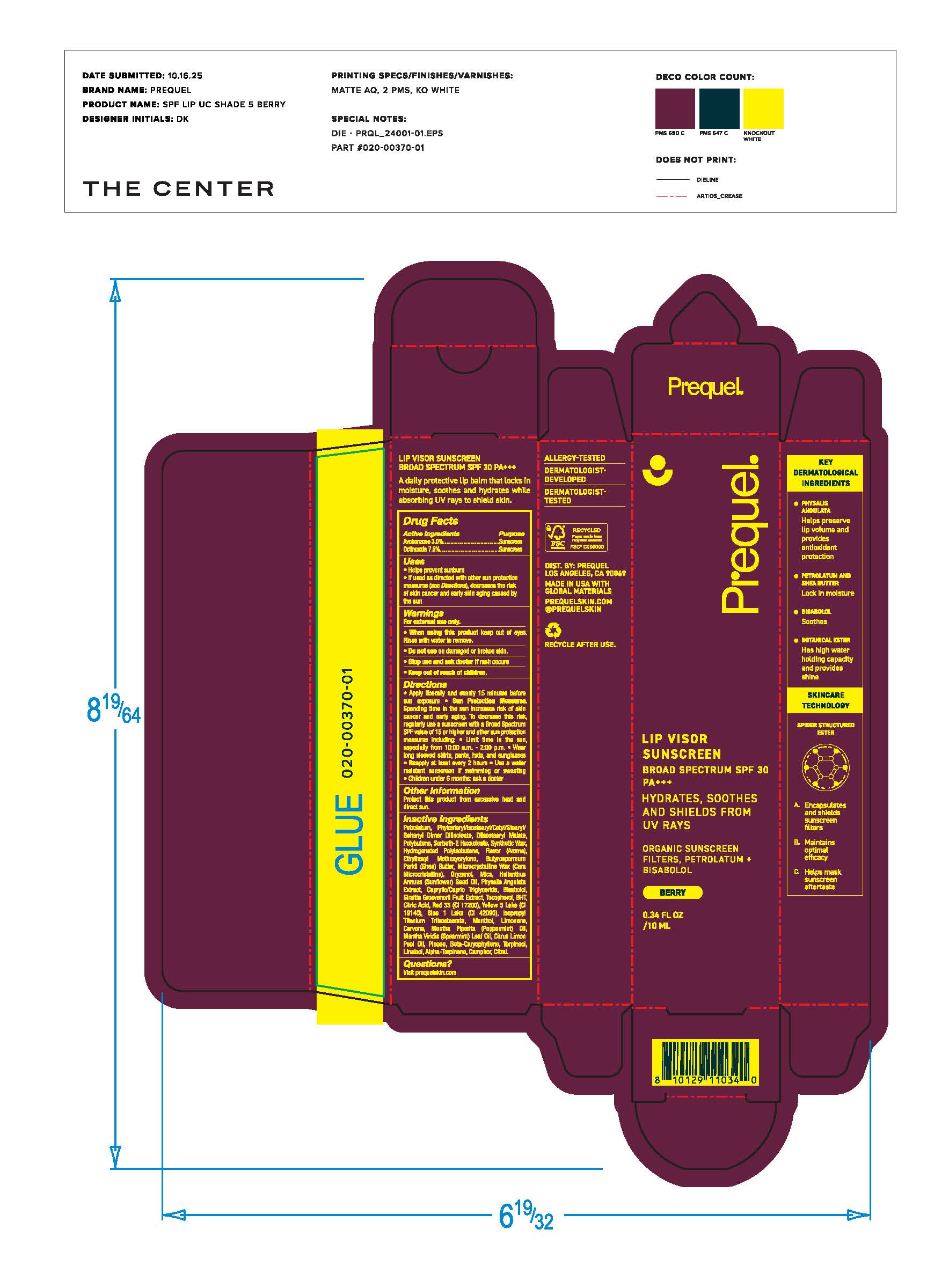 Prequel Lip Visor Berry SPF 30 by is a Otc medication manufactured, distributed, or labeled by The Center Brands, LLC. Drug facts, warnings, and ingredients follow.