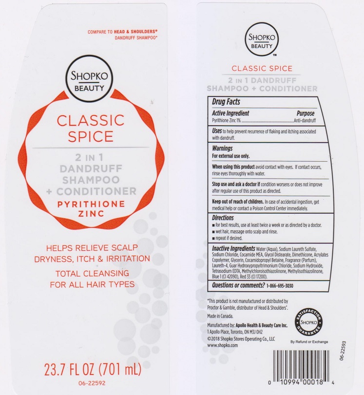 Shopko Beauty Classic Spice 2 in 1 Dandruff by is a Otc medication manufactured, distributed, or labeled by Apollo Health and Beauty Care Inc.. Drug facts, warnings, and ingredients follow.