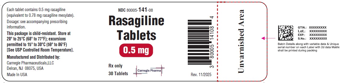 Rasagiline by is a Prescription medication manufactured, distributed, or labeled by Carnegie Pharmaceuticals LLC. Drug facts, warnings, and ingredients follow.
