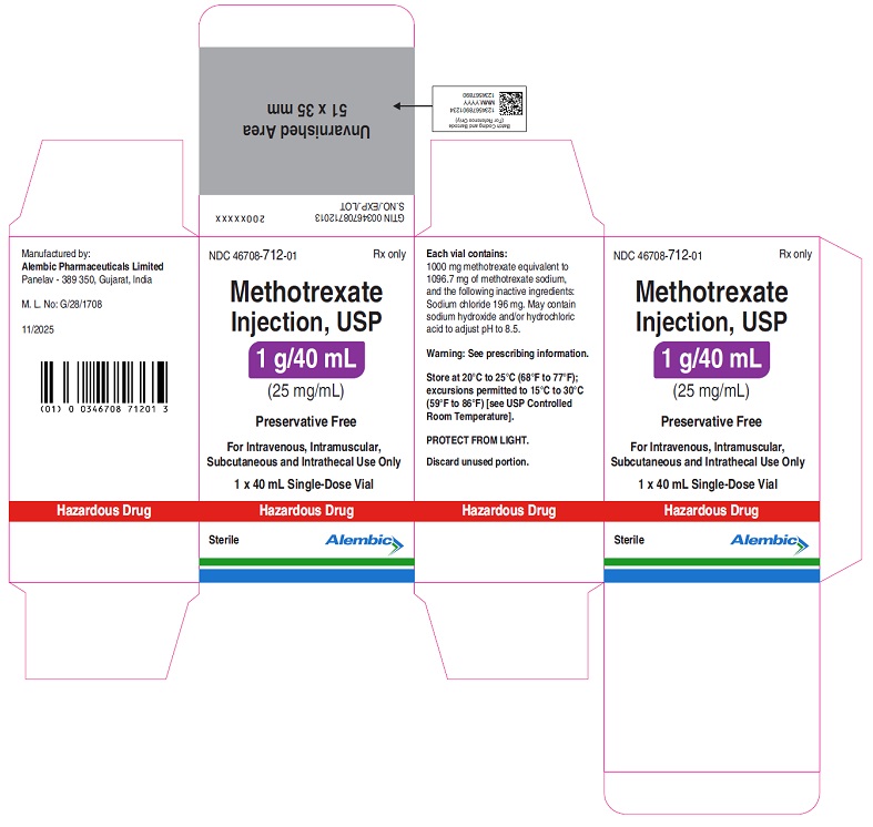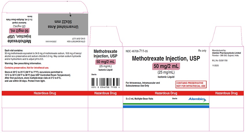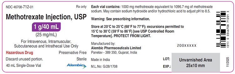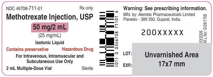 Active ingredient: methotrexate. Inactive ingredients for Methotrexate Injection Preservative-free: sodium chloride. May contain sodium hydroxide and/or hydrochloric acid to adjust pH to 8.5. Inactive ingredients for Methotrexate Injection with Preservative: benzyl alcohol and sodium chloride. May contain sodium hydroxide and/or hydrochloric acid to adjust pH to 8.5. For more information, call 1-866-210-9797. Manufactured by: Alembic Pharmaceuticals Limited Panelav - 389 350, Gujarat, India. |