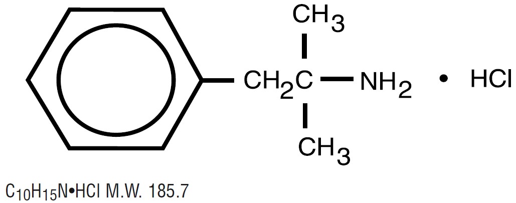 Phentermine hydrochloride USP is a sympathomimetic amine anorectic. It has the chemical name of α,α,-Dimethylphenethylamine hydrochloride. The structural formula is as follows: